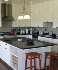 Pure Black quartz is a solid surface containing 93% quartz materials (SiO2) bound with adhesive with the characteristics of resistant to scratch, stains, and chemicals. It is made of small pure black quartz granules. It is most suitable for making kitchen, island, and vanity tops. Both polished and honed surfaces are available.