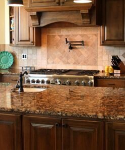 Imperial Brown granite, originating from Brazil, is one of the most widely known and used brown-tone-based granites filled with white crystal chips through the slabs. Its classic granite look and hard texture make it most suitable for making floors, stairs, and countertops. Due to its lower cost, Imperial Brown granite is the best option for indoor and outdoor decorations in commercial spaces. Both polished and honed surfaces are available.