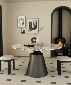 Italian interior new design Stone Furniture Marble Stainless Steel Dining Table Round Dinning Table Set Dining Room Furniture