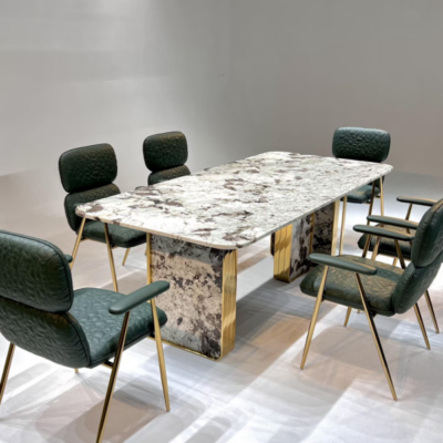 Italian interior new design Stone Furniture high end nature marble stainless steel legs fancy villa dining furniture