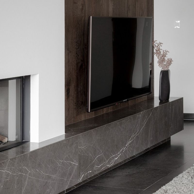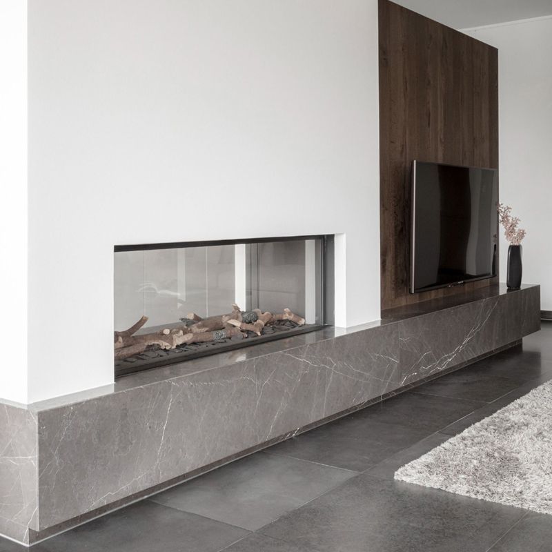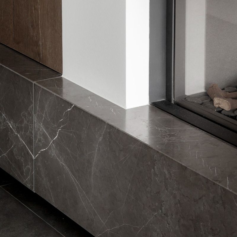 The sintered stone is a composite material made of engineered quartz, feldspar, silica sand, and mica powder which are molded by a pressing machine with more than 10,000-ton pressure and fired in a roller kiln with over 1,200℃ temperature to create a vitrified surface, with the characteristics of a natural marble look, resistant to scratches and stains, and free of radiation and formaldehyde. Sintered stones have less thickness than natural marble, therefore, it is the most optimal decoration material for the big-scaled wall veneer in commercial spaces or residential spaces. ZL927020 Hermes Grey imitates real marble, which is the most optimal selection for your big-scaled floor and wall decorations. Both polished and matt surfaces are available.