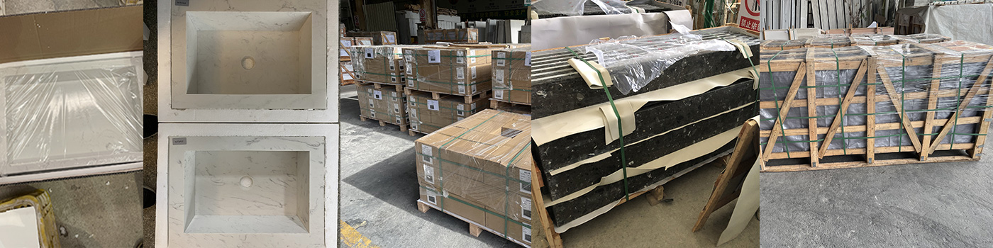 - Inside with soft plastic foam bewteen each vanity top, this package is for cut to size hotel or apartment project.