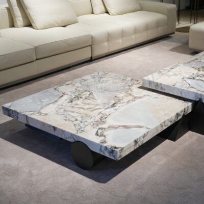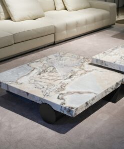 Luxury Square Stone Table Modern Design Living Room Furniture Design Marble Top Wood Leg Coffee Table Set