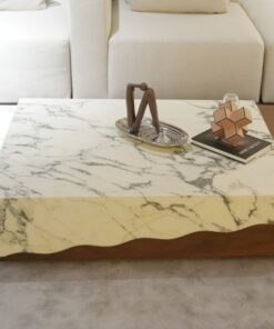 Italian Design Hotel Luxury Stone Furniture Rectangle Coffee Table Set Wooden Legs Marble top Home Living Room Competitive Price