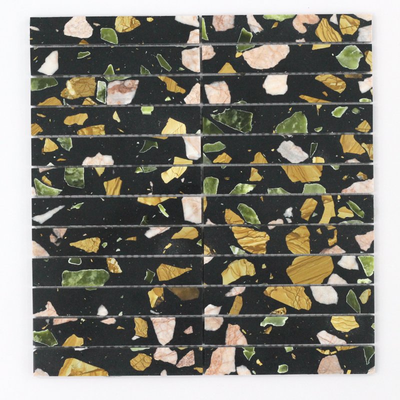 Black Terrazzo Stone Mosaic toilet kitchen backsplash tile China factory wholesaler