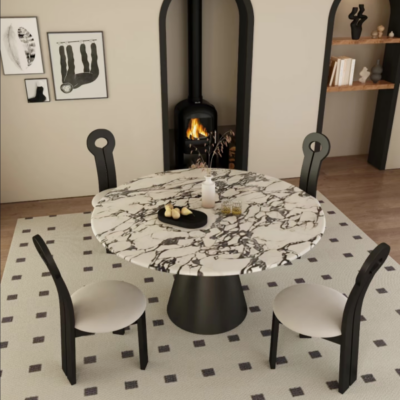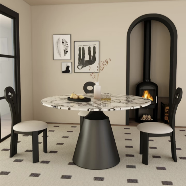 Luxury Stone Natural Marble Stone Furniture Dining Table Popular metal tripod marble table 3 Chairs modern simple villa designer marble furniture