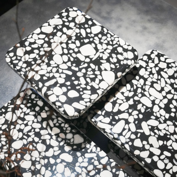 Luxury Terrazzo Stone Table White And Black Squre Dining Table Custom Made Factory Discount
