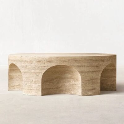 Modern Luxury Latest Design Travertine Marble Stone Tea Table Modern Round Light Luxury Coffee Table Travertine Console Table