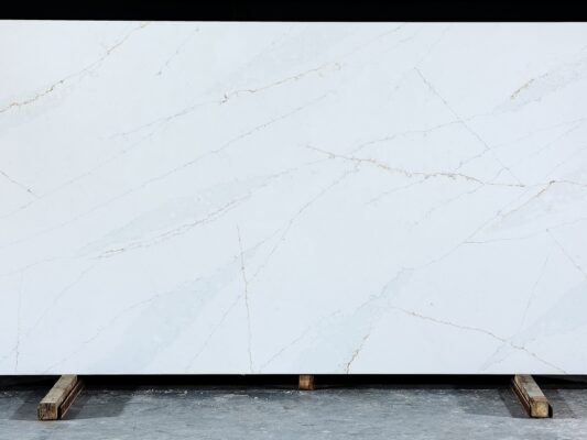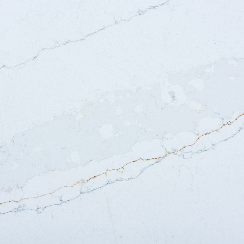 Oriental White is a solid surface containing 93% quartz materials (SiO2) bound with adhesive with the characteristics of resistant to scratch, stains, and chemicals. It is a pure white base with brown and grey thin reticular veins spreading through the full body of slabs. It has such a natural marble texture and quartz purity, which is the most optimal choice for your big-size kitchen countertops, island tops, and bench tops.