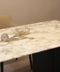 White Rectangle Stone Table Nature Marble Top 6 Seaters Marble Dining Table Customized