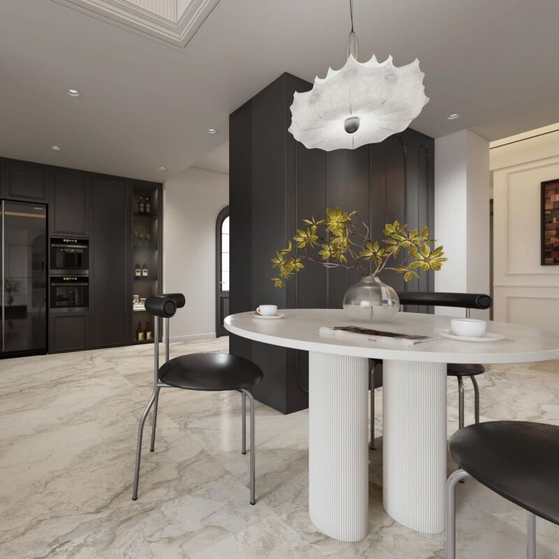 The sintered stone is a composite material made of engineered quartz, feldspar, silica sand, and mica powder which are molded by a pressing machine with more than 10,000-ton pressure and fired in a roller kiln with over 1,200℃ temperature to create a vitrified surface, with the characteristics of a natural marble look, resistant to scratches and stains, and free of radiation and formaldehyde. Sintered stones have less thickness than natural marble, therefore, it is the most optimal decoration material for the big-scaled wall veneer in commercial spaces or residential spaces. , which is the most optimal selection for your big-scaled floor and wall decorations. Both polished and matt surfaces are available.