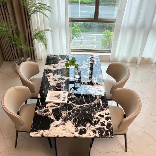 Custom made luxury stone Dining Table Stone Table Restaurant Arrival Luxury Hotel Black Leg Leather Living Room Restaurant Dining Chair Price Cheap