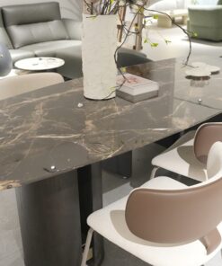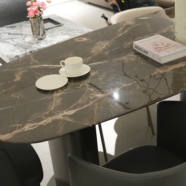 Customized Luxury Oval Shape Stone Table Marble Top Dining Table With Stainless Steel Round Base For Dining Room