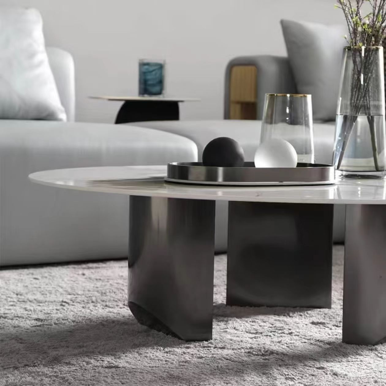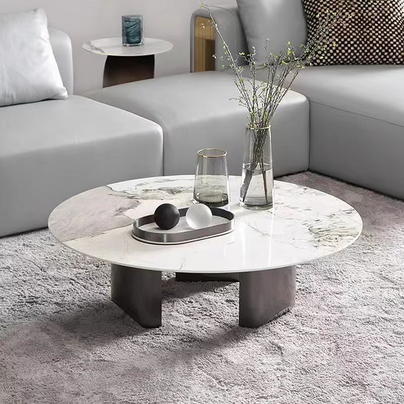High-end Stone Furniture Customized Sintered Stone new design special coffee table living room round white tea table