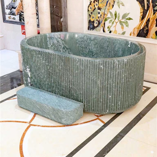 High quality custom Marble Stone Furniture natural green marble bathroom Natural stone bathtub surface with recessed for hotel bathrooms