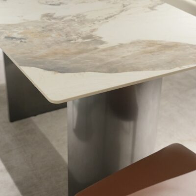 Luxury Rectangle High Quality Stone Table Dining Table with 2 Legs Stainless Steel Black Titanium for Home Use Dining Room Furniture