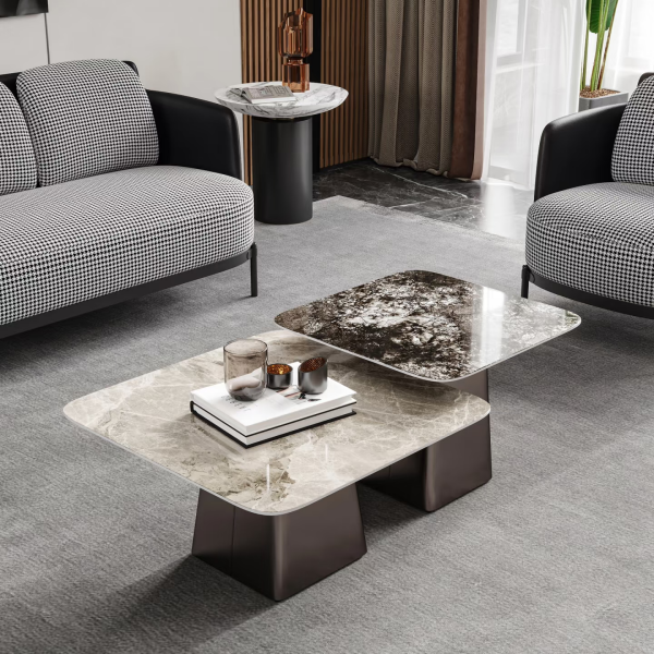 Luxury Stone Furniture Customized Living Room Coffee Table Sintered Stone Square Coffee Table Modern Glossy Living Room Furniture Center Table