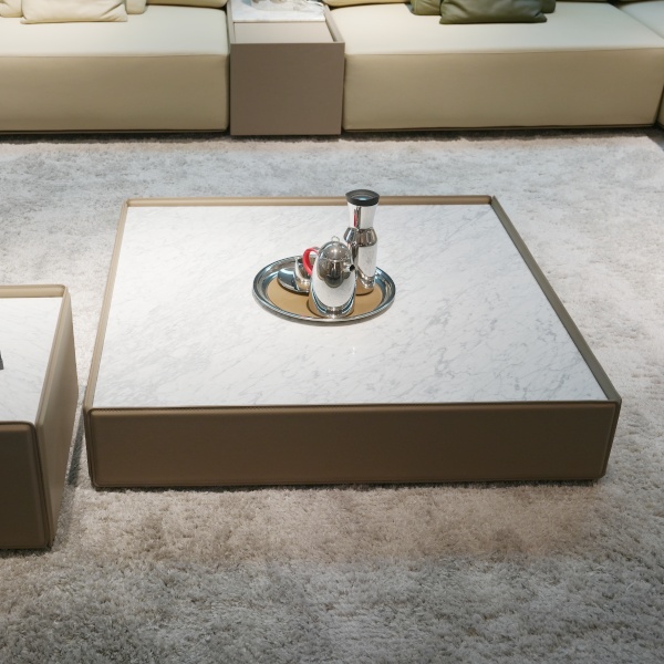 Modern Design Stone Table Sintered Stone Square Coffee Table Living Room Saddle Leather Coffee Table Wholesale Furniture