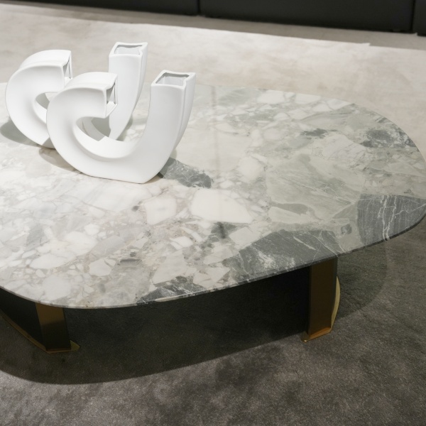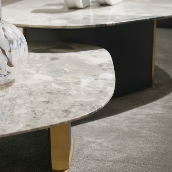 Modern Minimalist Designer Living Room Stone Table Custom Size Living Room Furniture Natural Marble Tea Table Set Stainless Steel Base Coffee Table