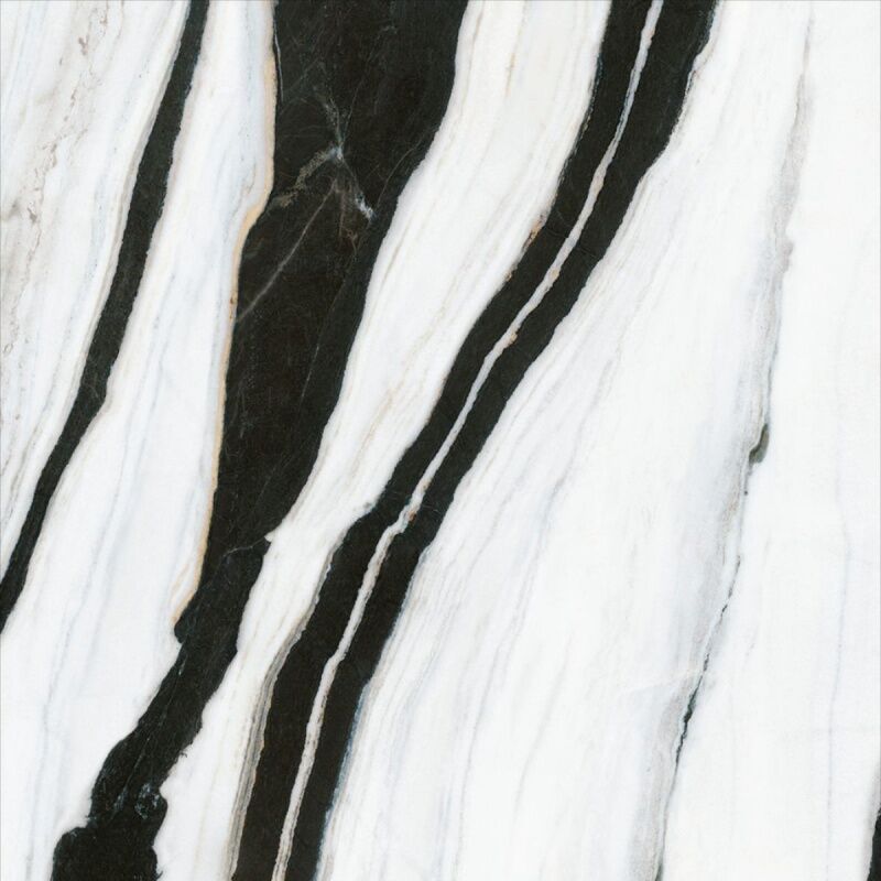 The sintered stone is a composite material made of engineered quartz, feldspar, silica sand, and mica powder which are molded by a pressing machine with more than 10,000-ton pressure and fired in a roller kiln with over 1,200℃ temperature to create a vitrified surface, with the characteristics of a natural marble look, resistant to scratches and stains, and free of radiation and formaldehyde. Sintered stones have less thickness than natural marble, therefore, it is the most optimal decoration material for the big-scaled wall veneer in commercial spaces or residential spaces. LV1632LS036 Panda White imitates the real Panda White marble, which is the most optimal selection for your big-scaled floor and wall decorations.