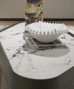 Modern fish-belly white marble irregular central coffee table and round stone furniture